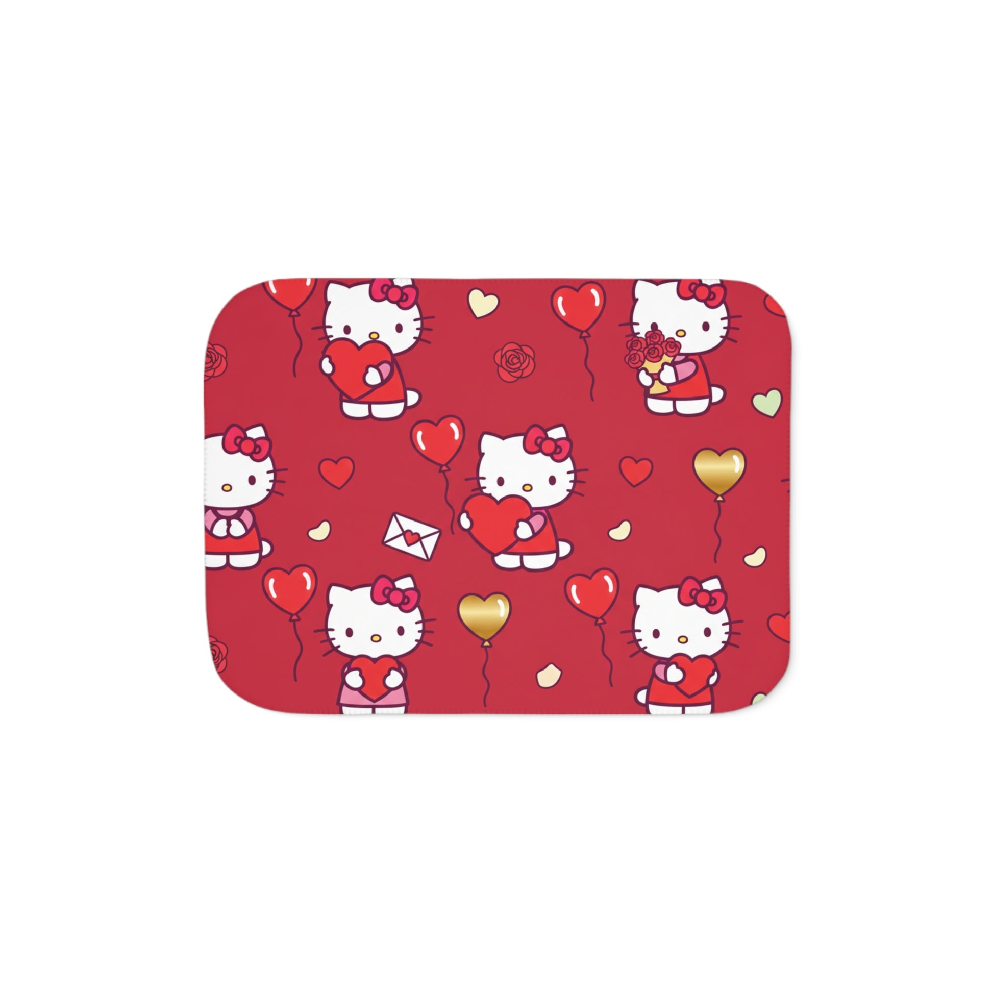 Hello Kitty Valentine Sherpa Blanket — Reversible Red Patterned & Cozy Beige